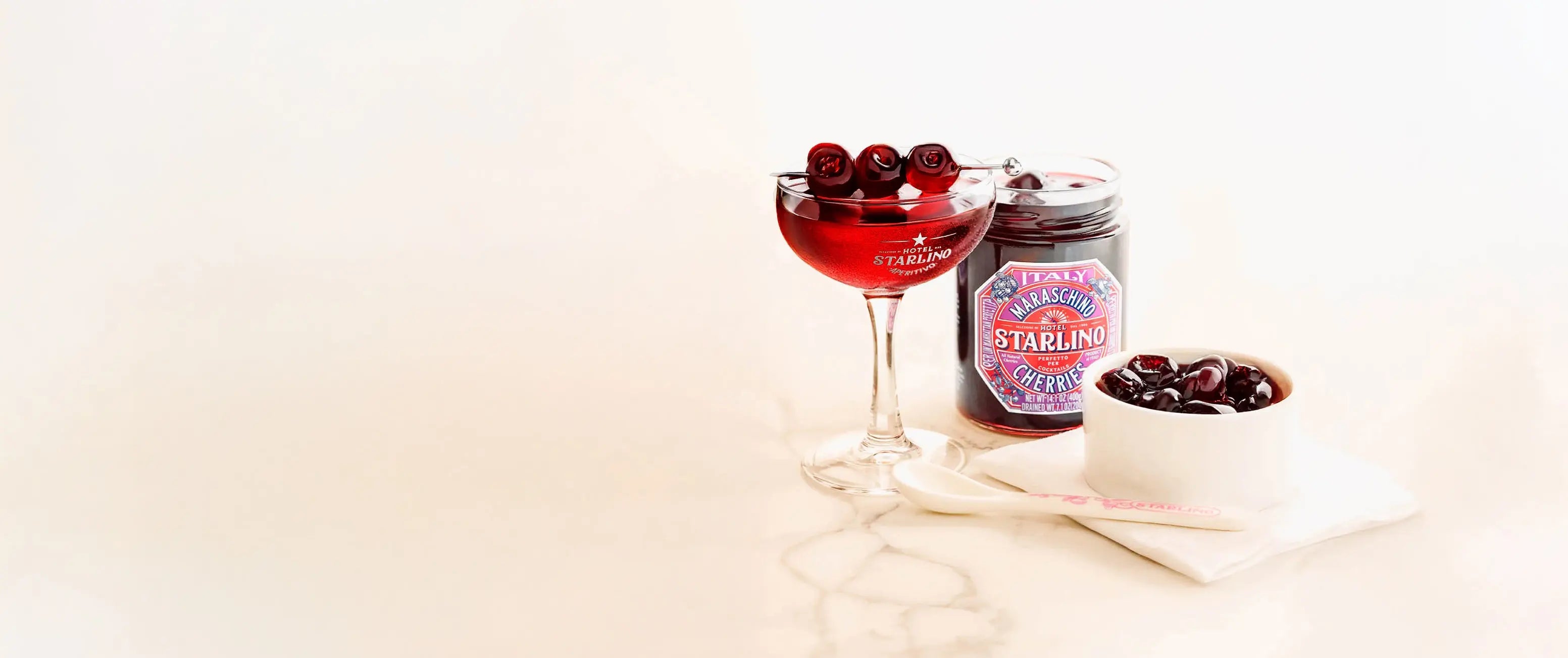 Starlino Maraschino Cherries aren't meant to be the first thing you taste. They're meant to be the last. Preserved in Marasca syrup, they bring balance and intention to the final moment of a well-made cocktail.